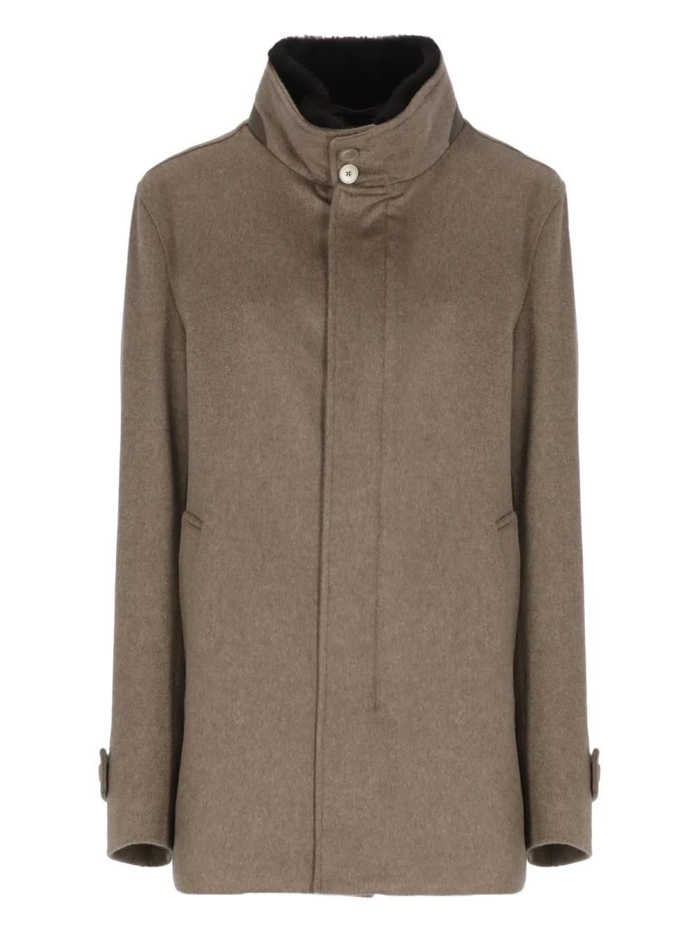 cashmere coat Highlights - Light brown - Concealed front button fastening - Two side welt pockets - Belted cuffs Made in Italy Composition Outer: Cashmere 100%, Lamb Fur 100% Lining: Polyamide 100%, Cupro 100% Washing instructions Read Manufacturer Guidelines