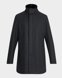 Men's Twill Car Coat w/ Removable Faux-Fur Collar