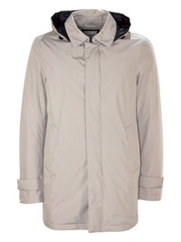 concealed-fastening hooded jacket Highlights - Grey - Shirt collar - Hooded - Concealed fastening - Side pockets Made in Italy Composition Polyester 100% Washing instructions Read Manufacturer Guidelines