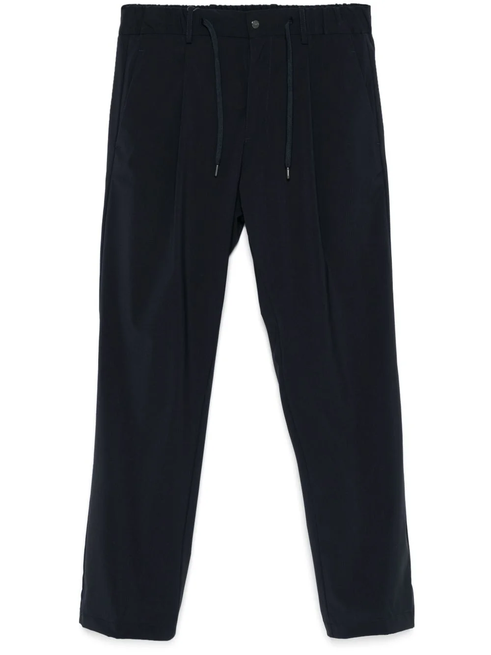 cotton trousers Highlights - Navy blue - Front press-stud and zip fastening - Elasticated drawstring waistband - Two diagonal pockets to the sides - Two rear welt pockets Made in Italy Composition Outer: Polyester 46%, Polyamide 29%, Wool 20%, Elastane 5% Lining: Cotton 100% SIZE & FIT Model measurements Height 6 ft 1 in(1.86 m) Bust/Chest 37.4 in(95 cm) Hips 36.22 in(92 cm) Waist 29.52 in(75 cm) FittingInformation Designed for a tapered leg, offering a loose unrestricted fit over the leg with a closer fit towards the ankle The internal drawstring at the hem allows for fitted preferences at the ankle Made from a midweight stretch fabric, this piece offers elasticity and flexibility when worn