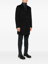 detachable-liner button coat Highlights Made in Italy Composition Lining: Polyamide 100%, Cupro 100%, Polyester 100% Outer: Cashmere 100%, Polyamide 100%, Polyurethane 100%, Cotton 55%, Polyester 45% SIZE & FIT Model measurements Height 6 ft 1 in(1.85 m) Bust/Chest 35.82 in(91 cm) Hips 37.79 in(96 cm) Waist 29.13 in(74 cm)