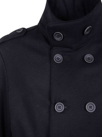 double-breasted coat Highlights - Black - Double-breasted button fastening - High neck - Shoulder epaulettes - Long sleeves Imported Composition Outer: Wool 75%, Polyamide 25% Lining: Polyester 100% Washing instructions Read Manufacturer Guidelines