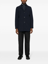 double-layer coat Highlights - Navy blue - Double layer - Padded panels - High neck - Camp collar - Front button and zip fastening - Long sleeves - Two side welt pockets - Central rear vent - Straight hem Made in Italy Composition Polyurethane 100%, Polyester 100%, Polyamide 100% Lining: Polyamide 100%, Polyester 100% SIZE & FIT Model measurements Height 6 ft 2 in(1.89 m) Bust/Chest 34.25 in(87 cm) Hips 35.43 in(90 cm) Waist 29.92 in(76 cm) FittingInformation Designed for a slim fit, offering a comfortable fit that sits just away from the body The detachable panel offers the preference for a different fit Made from a midweight non-stretch fabric This piece fits true to size – take your usual size Washing instructions Dry Clean Only