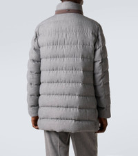 You can face the cold weather in style with this down coat by Herno. The piece features a buttoned, padded silhouette and is DOWNPASS certified, meaning its feathers and down come from a more ethical sourcing process. Product Details - Material: 70% viscose, 30% wool - Care instructions: dry clean - Made in Armenia - Designer color name: Grigio Perlato - Item color: gray - Lining: 100% viscose - Lining II: 100% polyamide - Filling: 100% polyester - Filling II: 80% down, 20% feathers - Trim: 90% polyester, 10% elastane - Coating: 100% polyurethane - Contains non-textile parts of animal origin - Closure: buttoned front, two-way zipped front - Pockets: snap-buttoned pockets, internal pockets - Item number: P01070038 Size & Fit - True to size - Straight fit - Non-stretchy fabric - Falls below the hip - Height of model is 192cm-75.5" and wears a size IT 50