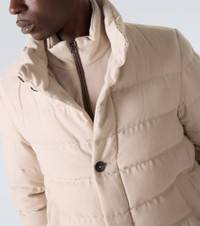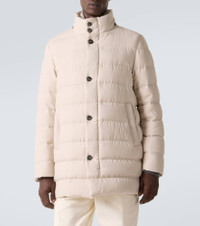 You can face the cold weather in style with this down coat by Herno. The piece features a buttoned, padded silhouette and is DOWNPASS certified, meaning its feathers and down come from a more ethical sourcing process. Product Details - Material: 70% viscose, 30% wool - Care instructions: dry clean - Made in Armenia - Designer color name: Chantilly - Item color: beige - Lining: 100% viscose - Lining II: 100% polyamide - Filling: 100% polyester - Filling II: 80% down, 20% feathers - Contains non-textile parts of animal origin - Closure: zip and button fastening - Pockets: snap-buttoned pockets - Item number: P01070037 Size & Fit - True to size - Straight fit - Non-stretchy fabric - Falls below the hip - Height of model is 192cm-75.5" and wears a size IT 50