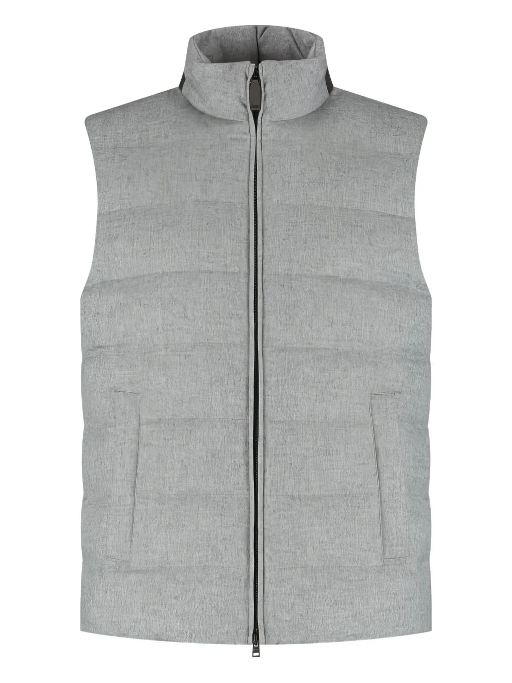 quilted wool gilet Highlights - Grey - Quilted design - High neck - Zip fastening - Side pockets - Sleeveless Imported Composition Fabric 100% Washing instructions Read Manufacturer Guidelines