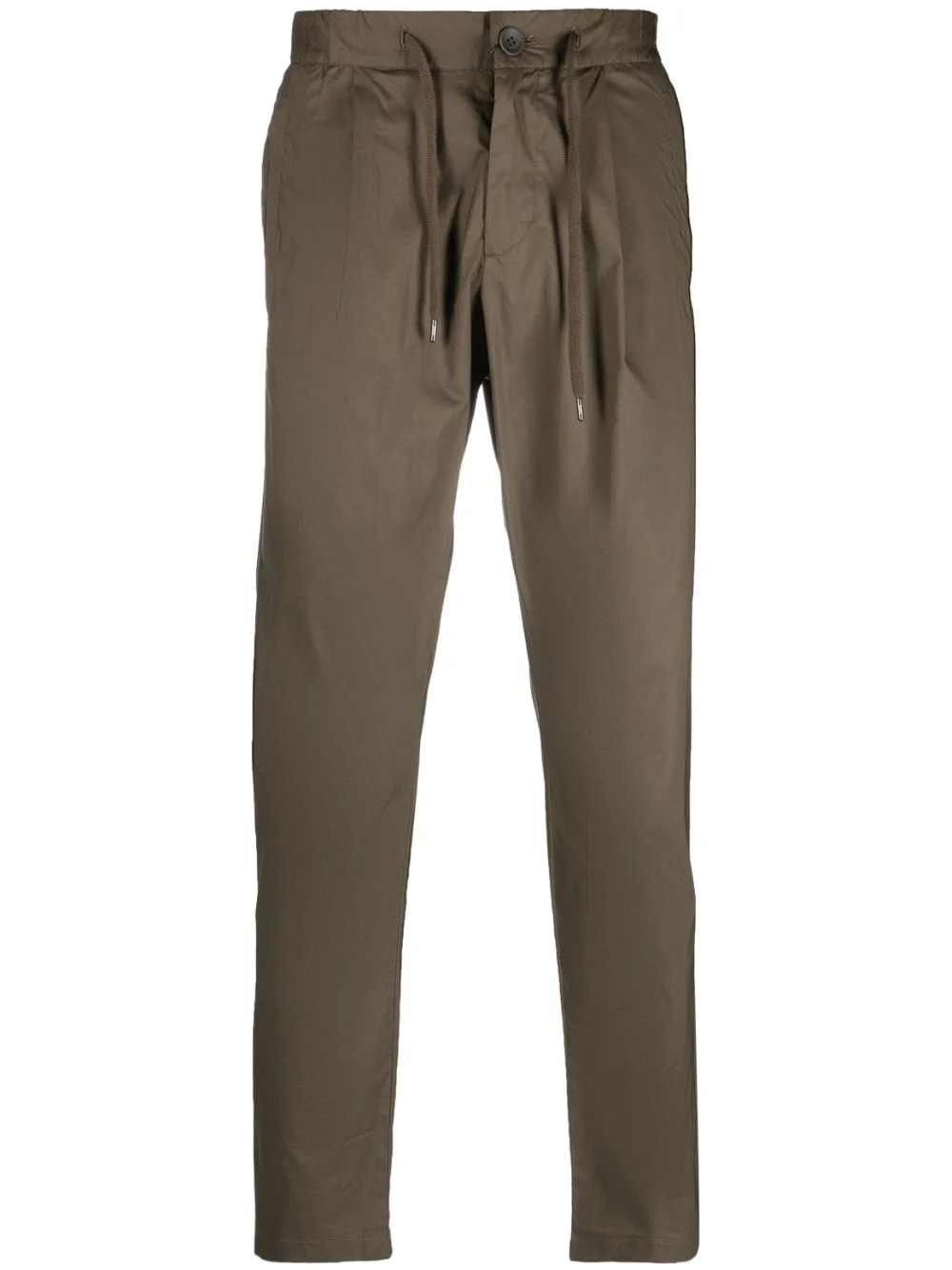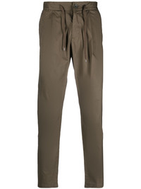 drawstring straight-leg trousers Highlights - Khaki - Stretch-cotton - Pleat detailing - Straight leg - Drawstring fastening waist - Front button and zip fastening - Two side inset pockets - Two rear flap pockets Made in Italy Composition Outer: Cotton 96%, Spandex/Elastane 4% Lining: Polyester 100% SIZE & FIT Model measurements Height 6 ft 0 in(1.84 m) Bust/Chest 36.22 in(92 cm) Hips 35.43 in(90 cm) Waist 26.77 in(68 cm) FittingInformation Designed for a slim tapered leg, offering a close fit that sits just away from the leg with a closer fit towards the ankle The elasticated waist allows for a comfortable fit Made from a lightweight stretch fabric, this piece offers elasticity and flexibility when worn This piece fits true to size – take your usual size Washing instructions Dry Clean Only