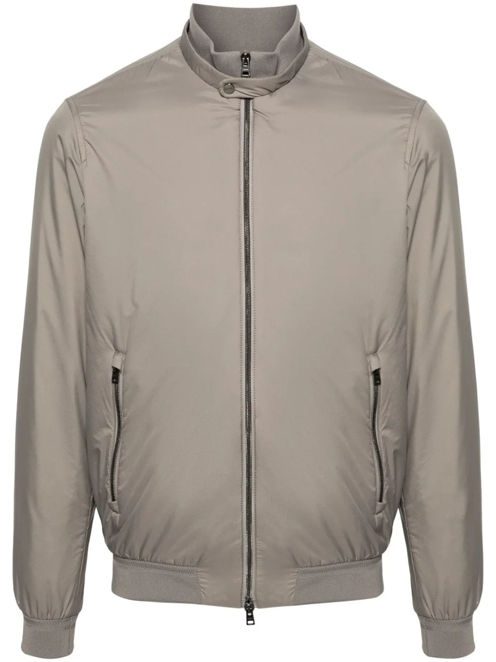 Ecoage band-collar bomber jacket Highlights - Grey - Padded design - Ribbed trim - Mock neck - Press-stud fastening band collar - Front two-way zip fastening - Long sleeves - Ribbed cuffs - Two side zip-fastening pockets - Full lining - Multiple internal slip pockets - Ribbed hem Imported Composition Outer: Polyamide 100%, Polyurethane 100% Lining: Polyamide 100% SIZE & FIT Model measurements Height 6 ft 2 in(1.87 m) Bust/Chest 37.79 in(96 cm) Hips 37.79 in(96 cm) Waist 30.31 in(77 cm) FittingInformation Designed for a relaxed fit, this piece allows for comfort and movement when worn The elasticated hem allows for movement and a comfortable fit Made from a midweight non-stretch fabric This piece fits true to size – take your usual size