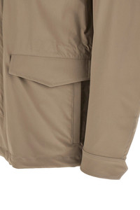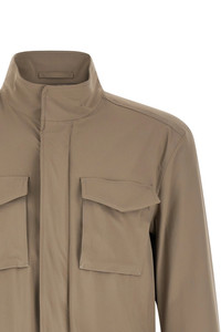 cod. FI000147U12781S2600 'Field' stretch nylon jacket with matt tear-effect wind and rain style, Saharan style, high neck, zip and snap button closure on the front, pockets, drawstring at the waist, long sleeves with cuffs, inner backpack braces. Color: Beige Size & Fit: True to size fit Composition: 88% polyamide, 12% elastane Made in: Italy
