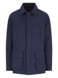 flap-pocket padded jacket Highlights - Navy blue - Padded design - Flap pockets - Button fastening Imported Composition Polyester 87%, Elastane 13% Washing instructions Read Manufacturer Guidelines