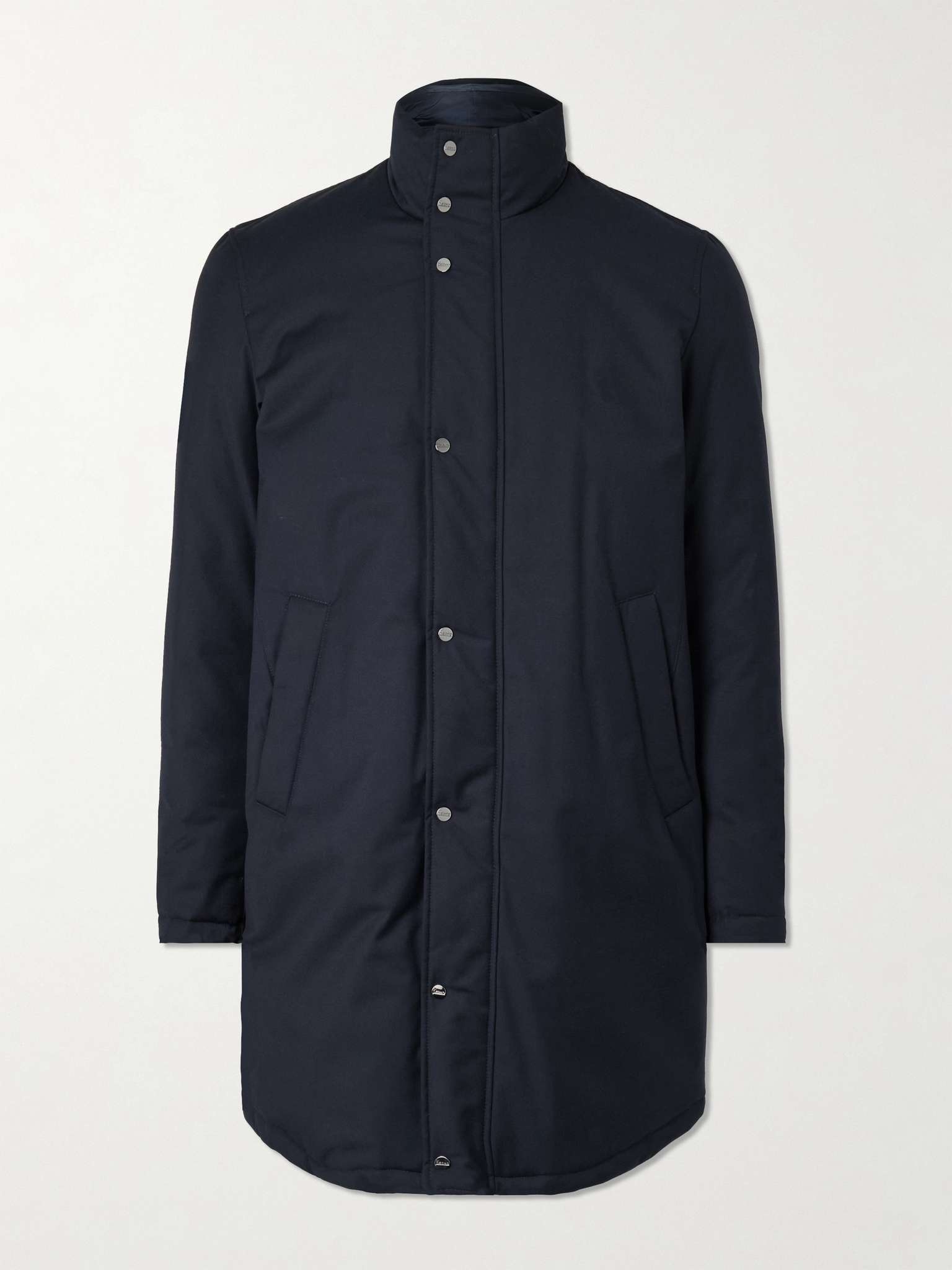 A detachable jacket liner offers an extra layer of insulation to Herno's practically-minded coat. It's made from quilted, down-filled shell that feels comfortably light, but packs a punch in the face of the elements. Size & Fit - Fits true to size, however those who are between sizes should take the larger size - Padded, non-stretchy fabric - Model is shown wearing an IT 50 - Model measures: chest 38"/ 96cm, height 6'0"/ 183cm Details & Care - Navy shell - Snaps and zip fastening - 80% polyester, 20% viscose; filling: 80% down, 20% feathers (Goose) - Dry clean
