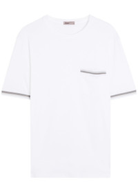 Info & Care Herno cotton T-shirt Ribbed striped trims, crew-neck, chest patch pocket, designer plaque at back neck Slips on 100% cotton Machine wash Size & Fit Length shoulder to hem: 28 inches/ 71cm Midweight Relaxed fit Model is 6'1"/ 185cm, chest size 38.5 inches and wears a size medium