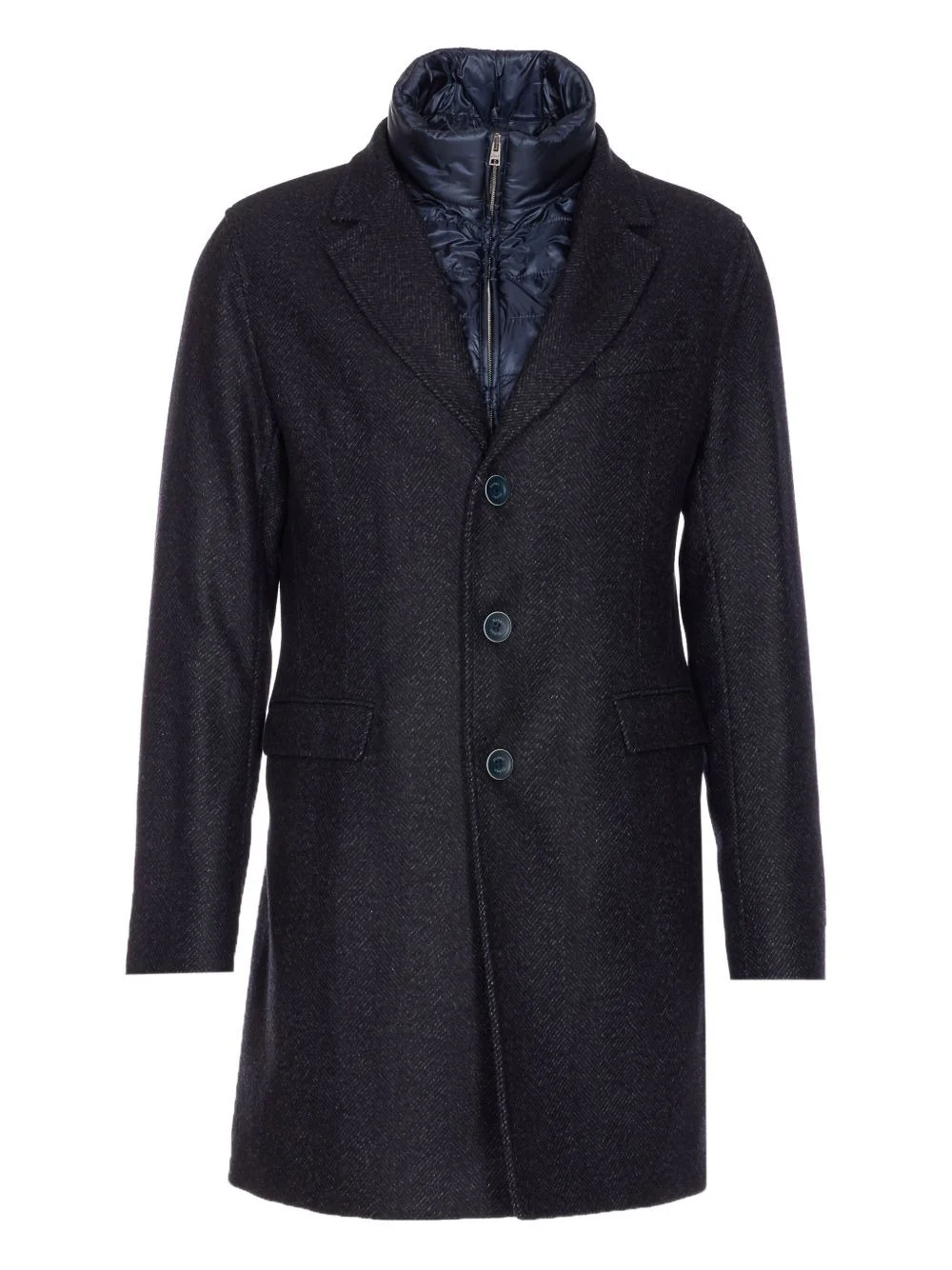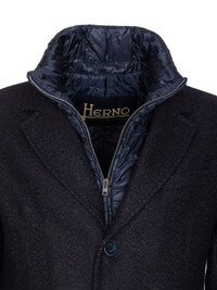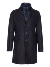 herringbone single-breasted coat Highlights - Navy blue - Herringbone weave - Zip and button closure - High neck - Quilted interior - Long sleeves Made in Italy Composition Outer: Wool 59%, Polyester 32%, Polyamide 6%, Acrylic (Fiber) 3% Lining: Polyamide 100% Polyester 100% Washing instructions Read Manufacturer Guidelines