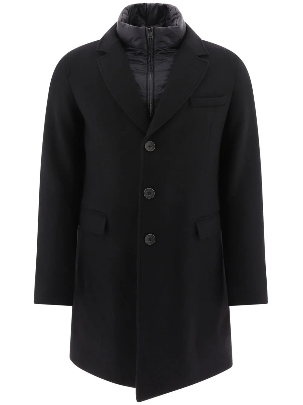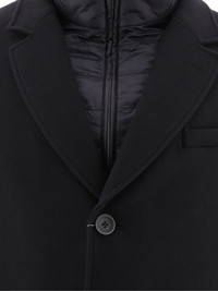 high-neck buttoned coat Highlights - Black - Wool blend - High neck - Button fastening - Long sleeves - Two side flap pockets - Buttoned cuffs - Straight hem - Central rear vent Made in Italy Composition Wool 73%, Polyamide 27% SIZE & FIT FittingInformation Designed for a slim fit, offering a comfortable fit that sits just away from the body The vented hem offers movement at the rear Made from a padded non-stretch fabric, giving it no natural elasticity Washing instructions Read Manufacturer Guidelines