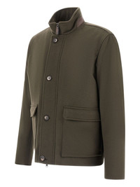 high-neck buttoned jacket Highlights - Olive green - High neck - Zip and button fastening - Patch-flap pockets Made in Italy Composition Fabric 100% Washing instructions Read Manufacturer Guidelines