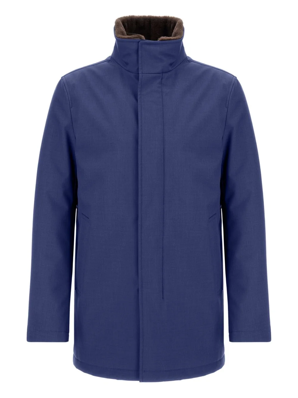 high-neck coat Highlights - Dark-blue - High neck - Front zip fastening - Welt pockets - Long sleeves Made in Italy Composition Outer: Polyester 100%, Polyurethane 100% Lining: Polyamide 100%, Polyester 100% Washing instructions Read Manufacturer Guidelines