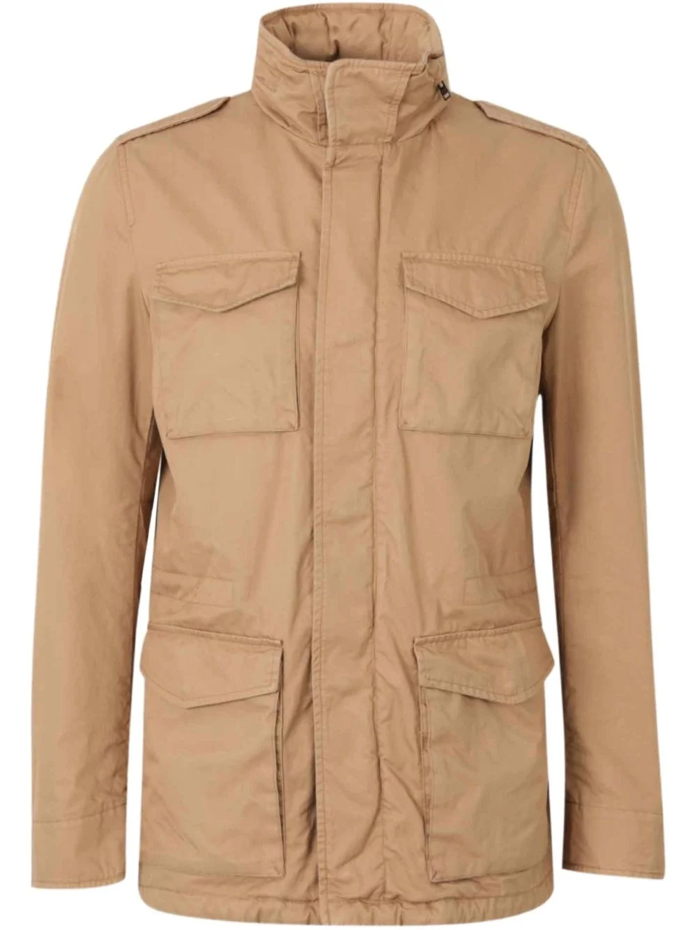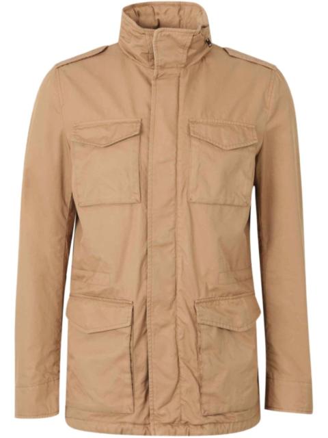 high-neck jacket Highlights - Sand beige - Concealed front zip fastening - Concealed hood - Four front flap pockets - Epaulettes Imported Composition Lining: Polyester 65%, Cotton 35% Outer: Cotton 100%