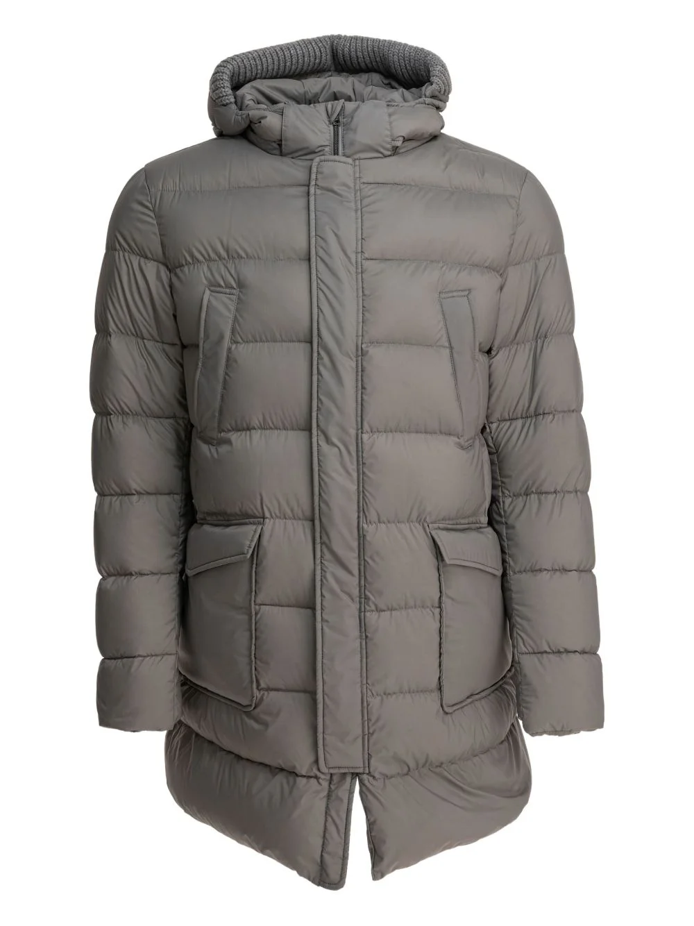 hooded coat Highlights - Grey - Hooded - Zip fastening - Pockets - Padded design Imported Composition Outer: Polyamide 100% Lining: Polyester 100% Filling: Down 90%, Feather 10% Washing instructions Read Manufacturer Guidelines