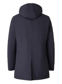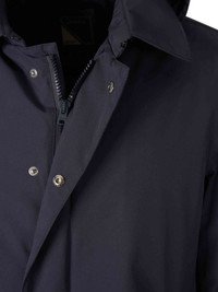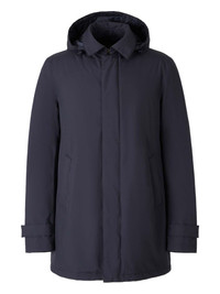 Laminar padded jacket Highlights - Navy blue - Concealed front press-stud and zip fastening - Drawstring hood - Two front welt pockets - Central rear vent Made in Italy Composition Outer: Polyester 100%, Polyamide 72%, Spandex/Elastane 22% Lining: Polyamide 100%, Goose Down 80%, Goose Feather 20%