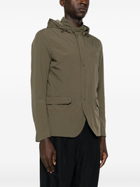 hooded lightweight shell jacket Highlights - Olive green - Shell - Dart detailing - Detachable drawstring hood - Mock neck - Concealed front zip fastening - Long sleeves - Chest welt pocket - Two front flap pockets - American rear vent - Straight hem - Mesh lining Made in Italy Composition Outer: Polyurethane 100%, Polyamide 77%, Elastane 23% Lining: Polyester 100% SIZE & FIT Model measurements Height 6 ft 2 in(1.87 m) Bust/Chest 36.41 in(92.5 cm) Hips 37 in(94 cm) Waist 29.52 in(75 cm) FittingInformation Designed for a slim fit, offering a comfortable fit that sits just away from the body The vented hem offers movement at the rear Made from a lightweight stretch fabric, this piece offers elasticity and flexibility when worn This piece fits true to size – take your usual size