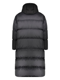 hooded padded coat Highlights - Black - Adjustable hood - Two flap pockets - Quilted design - Long sleeves Imported Composition Outer: Polyester 100% Lining: Goose Down 80%, Goose Feather 20% Washing instructions Read Manufacturer Guidelines