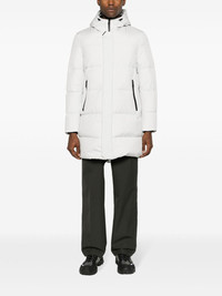 hooded padded parka coat Highlights - Milk white - Feather down - Padded design - Quilted - Funnel neck - Drawstring hood - Concealed fly and button fastening - Long sleeves - Two side zip-fastening pockets - Thigh-length - Straight hem Imported Composition Lining: Polyamide 100%, Feather Down 100% Outer: Polyester 100% SIZE & FIT Model measurements Height 6 ft 2 in(1.88 m) Bust/Chest 36.61 in(93 cm) Hips 35.82 in(91 cm) Waist 27.95 in(71 cm) FittingInformation Designed for a slim fit, offering a comfortable fit that sits just away from the body Made from a padded non-stretch fabric, giving it no natural elasticity This piece fits true to size – take your usual size