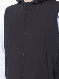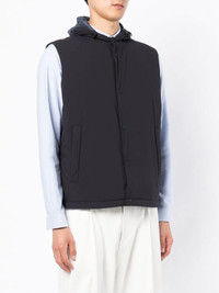 hooded press-stud sleeveless gilet hooded press-stud sleeveless gilet from HERNO featuring midnight blue, classic hood, front press-stud fastening, sleeveless, straight hem and two side slit pockets. Imported Composition Outer: Polyamide 86%, Spandex/Elastane 14% SIZE & FIT Model measurements Height 6 ft 2 in(1.87 m) Bust/Chest 34.25 in(87 cm) Hips 36.22 in(92 cm) Waist 29.52 in(75 cm) FittingInformation This piece fits true to size. We recommend you get your regular size Cut for a loose fit Made with a mid-weight stretch fabric Washing instructions Machine Wash