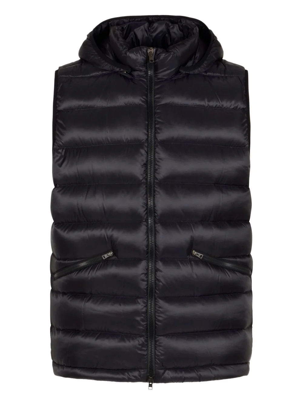 hooded quilted gilet Highlights - Black - Quilted design - Hooded neckline - Zip fastening Imported Composition Polyamide 100%, Nylon 100% Washing instructions Read Manufacturer Guidelines