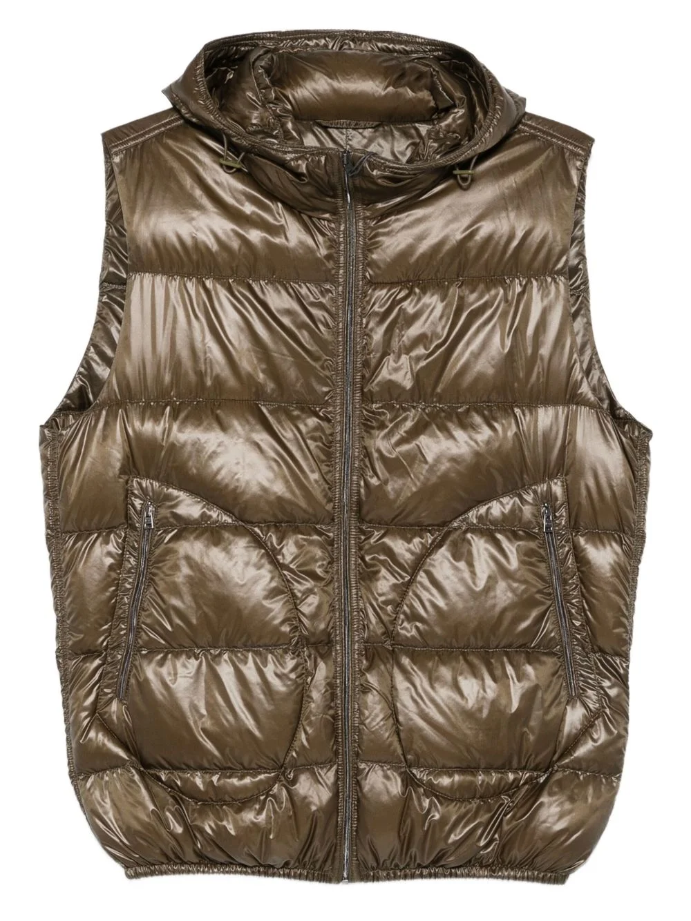 hooded quilted gilet Highlights - Green - Quilted design - Zip fastening - Hooded neckline - Zip pockets Imported Composition Lining: Polyamide 100%, Goose Down 90%, Goose Feather 10% Outer: Polyamide 100% SIZE & FIT Model measurements Height 6 ft 2 in(1.87 m) Bust/Chest 36.41 in(92.5 cm) Hips 37 in(94 cm) Waist 29.52 in(75 cm) Washing instructions Hand Wash