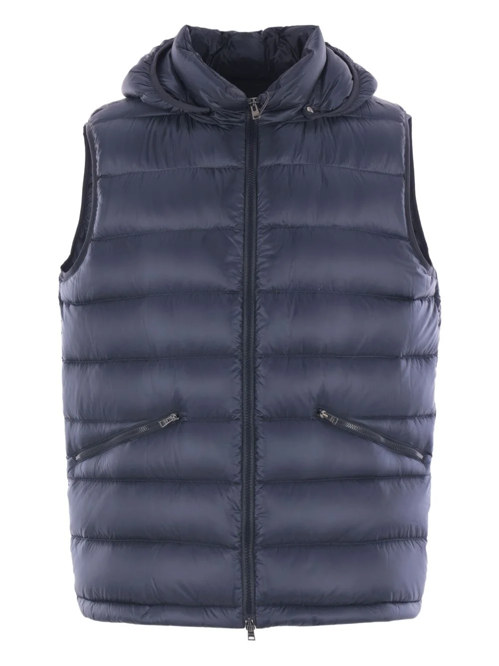hooded quilted gilet Highlights - Dark blue - Quilted design - Zip fastening - Two zip pockets - Hooded design - Sleeveless Imported Composition Outer: Polyamide 100% Lining: Goose Down 90%, Goose Feather 10% Washing instructions Read Manufacturer Guidelines
