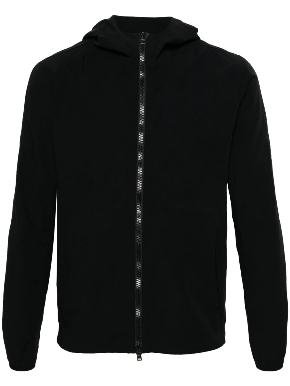 hooded water-repellent jacket Highlights - Black - Stretch-design - Debossed logo to the hood - Water-repellent - Drawstring hood - Funnel neck - Front two-way zip fastening - Long sleeves - Elasticated cuffs - Two side zip-fastening pockets - Drawstring hem - Unlined Imported Composition Polyamide 84%, Elastane 16% SIZE & FIT Model measurements Height 6 ft 2 in(1.87 m) Bust/Chest 36.22 in(92 cm) Hips 37 in(94 cm) Waist 27.95 in(71 cm) Measurement WAIST 41.73 in(106 cm) SLEEVE LENGTH 35.43 in(90 cm) FittingInformation Designed for a slim fit, offering a comfortable fit that sits just away from the body Made from a lightweight stretch fabric, this piece offers elasticity and flexibility when worn This piece fits true to size – take your usual size Washing instructions Hand Wash