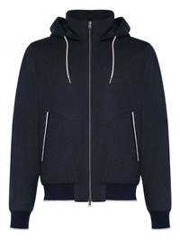 hooded zip jacket Highlights - Blue - Zip fastening - Hooded - Ribbed hem and cuffs - Welt pockets Made in Italy Composition Silk 51%, Cashmere 49% Washing instructions Read Manufacturer Guidelines