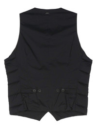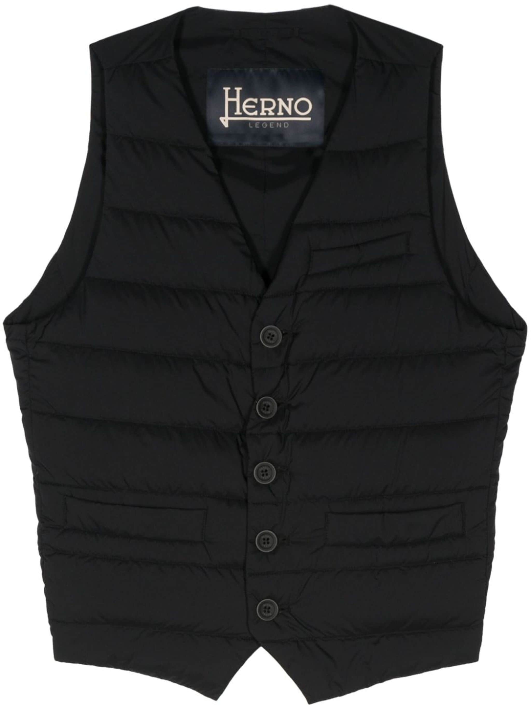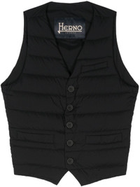 black goose down padded quilted panels plunging V-neck sleeveless chest welt pocket two front welt pockets adjustable strap to the rear full lining front button placket Size & Fit Model Measurements: Height: 1.88 m Bust/Chest: 95.0 cm Hips: 92.0 cm Waist: 72.0 cm Model wears size 48 Fabric and Care Designer Style ID: PI002ULE12456Z Designer Colour: 9300 BLACK Composition: Outer: Polyamide 100%, Polyurethane 100%, Polyester 100%; Lining: Polyamide 100%, Polyurethane 100%, Goose down 100% Washing instructions: Dry Clean Only Made in Romania