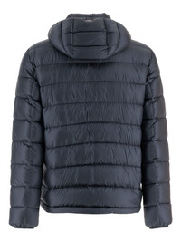 hooded quilted jacket Highlights - Navy blue - Quilted design - Zip fastening - Hooded neckline - Zip pockets Made in Italy Composition Polyamide 100% Washing instructions Read Manufacturer Guidelines