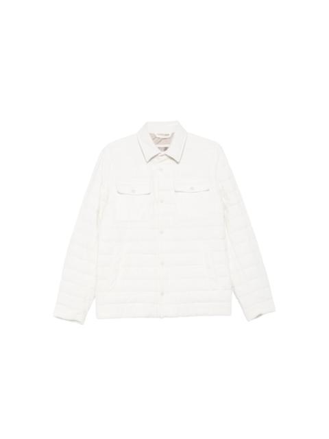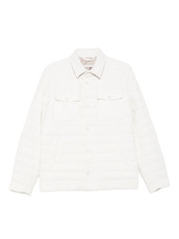 quilted flap-pocket jacket Highlights - White - Quilted design - Button fastening - Long sleeves - Flap pockets - Classic collar Made in Italy Composition Outer: Cotton 100%, Polyurethane 100%, Polyester 90%, Elastane 10% Lining: Polyester 100%, Goose Down 90%, Goose Feather 10% SIZE & FIT Model measurements Height 6 ft 2 in(1.87 m) Bust/Chest 37.79 in(96 cm) Hips 37.79 in(96 cm) Waist 30.31 in(77 cm) Washing instructions Hand Wash