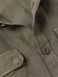 The men's wardrobe has long been informed by military style, from the days of Beau Brummell through to Jimi Hendrix. Herno's jacket is inspired by the field, with a straight cut, flap pockets and epaulettes. It's been made in Italy from army-green linen and is lined for easy layering. Size & Fit - Fits true to size. Take your normal size - Designed for a regular fit - Mid-weight, non-stretchy fabric - Model is shown wearing an IT 48 - Model measures: chest 38"/ 96cm, height 6'0"/ 183cm Details & Care - Army-green linen - Button fastenings - 100% linen - Dry clean