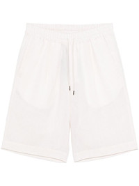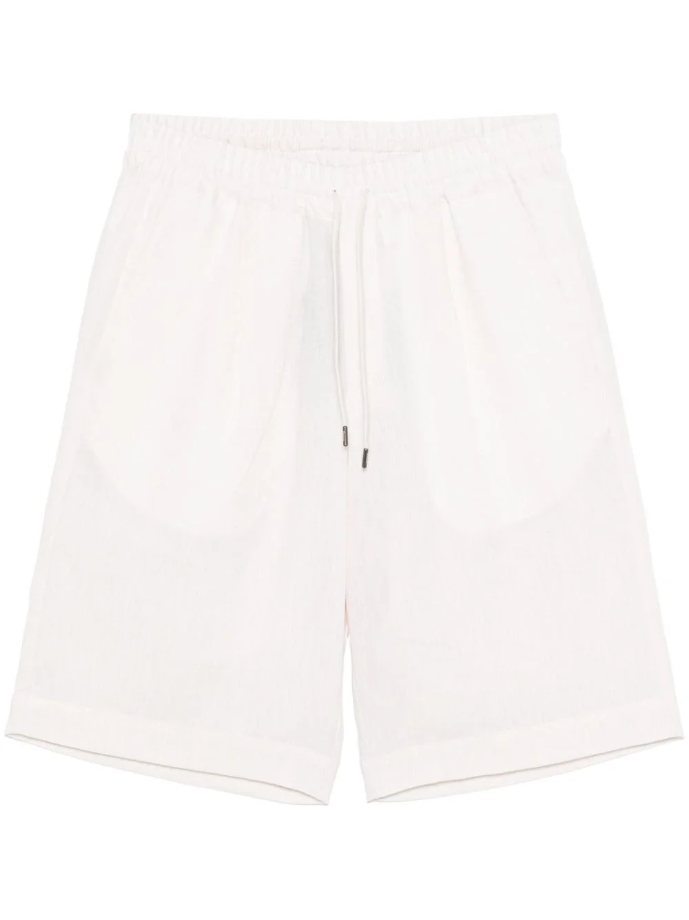 linen shorts Highlights - Ecru - Elasticated drawstring waistband - Two side slit pockets - Two rear welt pockets - Box-pleat detail Imported Composition Linen/Flax 100% SIZE & FIT Model measurements Height 6 ft 1 in(1.85 m) Bust/Chest 35.82 in(91 cm) Hips 37.79 in(96 cm) Waist 29.13 in(74 cm) FittingInformation Designed for a straight-leg fit, offering an unrestricted and comfortable fit over the leg The elasticated waist allows for a comfortable fit Made from a midweight non-stretch fabric