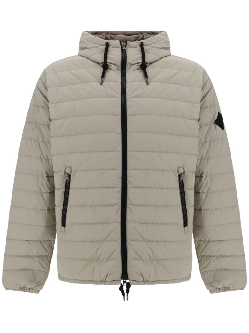 logo-applique puffer jacket Highlights - Taupe - Padded design - Quilted - Applique logo - Contrasting trim - Funnel neck - Drawstring hood - Front two-way zip fastening - Long sleeves - Elasticated cuffs - Two side zip-fastening pockets - Straight hem Imported Composition Polyester 100%