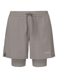 logo-print shorts Highlights - Grey - Drawstring waist - Zip back pocket - Double layer Made in Italy Composition Polyester 85%, Elastane 15% Washing instructions Read Manufacturer Guidelines