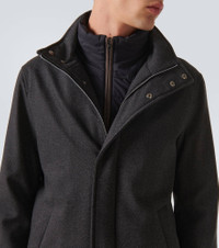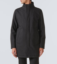 Product Details - Material: 100% wool - Care instructions: dry clean - Made in Italy - Designer color name: Antracite - Lining: 100% polyamide - Filling: 100% polyester - Trim: 90% polyester, 10% elastane - Closure: two-way zipped front with snap-button fastenings - Pockets: snap-buttoned pockets, internal pockets - Length: long (thigh-length) - Sleeves: long-sleeved - Item number: P00954075 Size & Fit - True to size - Straight fit - Non-stretchy fabric - Falls below the hip - The model in the picture is 185cm-6'1" and wearing a size IT 48