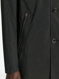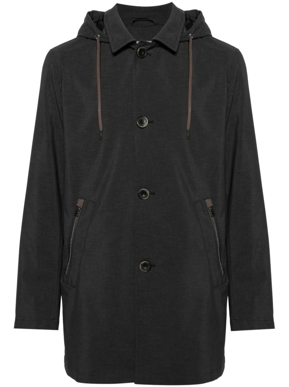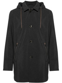 hooded parka coat Herno proves its outerwear credentials with this grey parka coat. It’s crafted from waterproof shell and equipped with a drawstring hood for enhanced coverage. Highlights - Dark grey - Waterproof - Drawstring hood - Spread collar - Front button fastening - Long sleeves - Front zip fastening pockets - Central rear vent - Multiple internal slip pockets - Full lining - Mid-length - Straight hem Made in Italy Composition Lining: Polyester 100% Outer: Polyester 100%, Polyurethane 100% SIZE & FIT Model measurements Height 6 ft 0 in(1.84 m) Bust/Chest 35.82 in(91 cm) Hips 37 in(94 cm) Waist 28.34 in(72 cm) FittingInformation Designed to be unstructured, offering a loose fit throughout Made from a midweight non-stretch fabric This piece fits true to size – take your usual size Washing instructions Dry Clean Only