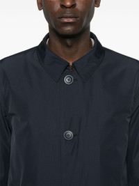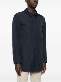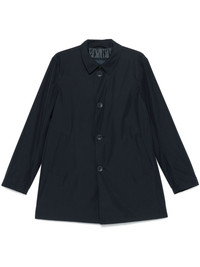 classic-collar jacket Highlights - Navy blue - Front button fastening - Central rear vent - Two side welt pockets - Internal zip-fastening pockets Made in Italy Composition Lining: Cupro 100%, Polyester 100% Outer: Polyester 100% SIZE & FIT Model measurements Height 6 ft 2 in(1.87 m) Bust/Chest 36.41 in(92.5 cm) Hips 37 in(94 cm) Waist 29.52 in(75 cm) FittingInformation Designed for a regular fit, allowing for a comfortably loose fit throughout the body The vented hem offers movement at the rear Made from a lightweight non-stretch fabric
