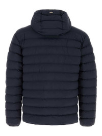 quilted hooded jacket Highlights - Navy blue - Lightweight padding - Front zip fastening - Side pockets - Fixed hood Imported Composition Outer: Nylon 86%, Elastane 14% Lining: Nylon 86%, Elastane 14%