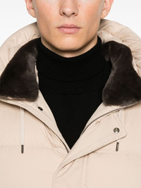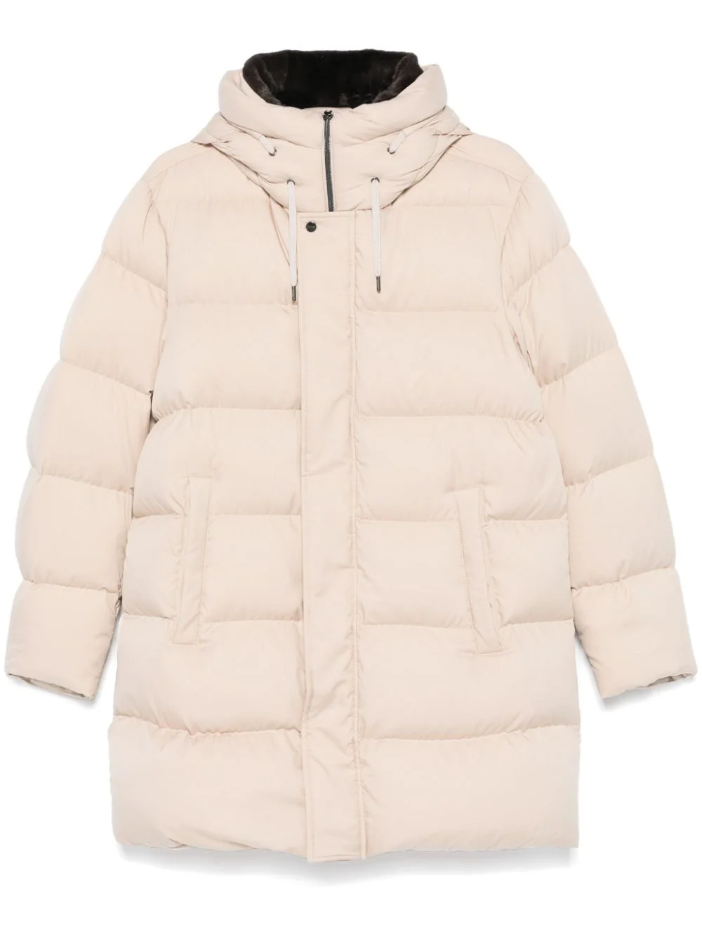 padded coat Highlights - Light beige - Front two-way zip fastening - Concealed front press-stud fastening - Padded design - Quilted - Drawstring hood - Funnel neck - Long sleeves - Two side welt pockets - Full lining - Straight hem - Mid-length Imported Composition Lining: Polyamide 100%, Polyester 100%, Goose Down 90%, Goose Feather 10% Outer: Polyester 100% SIZE & FIT Model measurements Height 6 ft 2 in(1.87 m) Bust/Chest 38.97 in(99 cm) Hips 37.99 in(96.5 cm) Waist 29.52 in(75 cm) FittingInformation Designed to be unstructured, offering a loose fit throughout The adjustable drawstring means that you can adjust this piece’s fit to suit your comfort and preference Made from a padded non-stretch fabric, giving it no natural elasticity