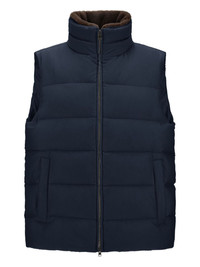 padded gilet Highlights - Navy blue - Quilted design - High neck - Zip fastening - Welt pockets Imported Composition Fabric 100% Washing instructions Read Manufacturer Guidelines