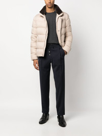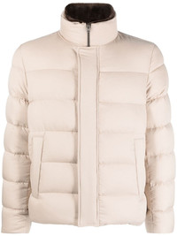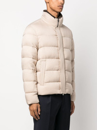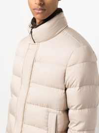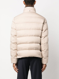 padded goose-down jacket Highlights - Light beige - Goose down - Padded design - Stand-up collar - Front press-stud and zip fastening - Long sleeves - Two side slit pockets - Straight hem Imported Composition Outer: Polyester 100%, Polyurethane 100% Lining: Polyamide 100%, Goose Down 90%, Goose Feather 10% SIZE & FIT Model measurements Height 6 ft 2 in(1.87 m) Bust/Chest 38.18 in(97 cm) Hips 36.61 in(93 cm) Waist 29.13 in(74 cm) FittingInformation Designed for a slim fit, offering a comfortable fit that sits just away from the body The internal drawstring at the hem allows for fitted preferences Made from a padded non-stretch fabric, giving it no natural elasticity This piece fits true to size – take your usual size Washing instructions Machine Wash