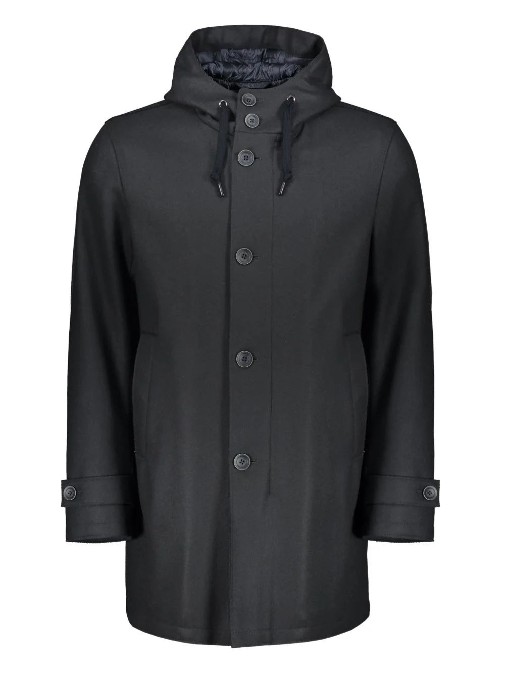 padded hooded coat Highlights - Black - Padded design - Hood - Buttoned cuffs Made in Italy Composition Outer: Virgin Wool 80%, Polyamide 20% Lining: Polyester 100% Washing instructions Read Manufacturer Guidelines