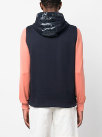 padded hooded gilet navy blue quilted padded design panelled design silver-tone logo plaque drawstring hood front zip fastening round neck sleeveless straight hem Imported Composition Outer: Polyamide 100%, Polyester 60%, Cotton 40% Lining: Polyamide 100%, Goose Down 90%, Feather 10% SIZE & FIT Model measurements Height 6 ft 0 in(1.84 m) Bust/Chest 36.22 in(92 cm) Hips 35.43 in(90 cm) Waist 26.77 in(68 cm) FittingInformation This piece fits true to size. We recommend you get your regular size Cut for a slim fit Made with a lightweight non-stretch fabric Washing instructions Hand Wash