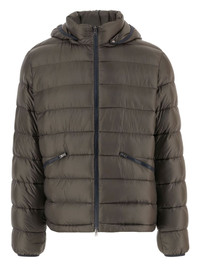 padded hooded jacket Highlights - Green - Front zip closure - High collar - Long sleeves - Elasticated cuffs - Two zip-fastened pockets Made in Italy Composition Polyester 100% Washing instructions Read Manufacturer Guidelines