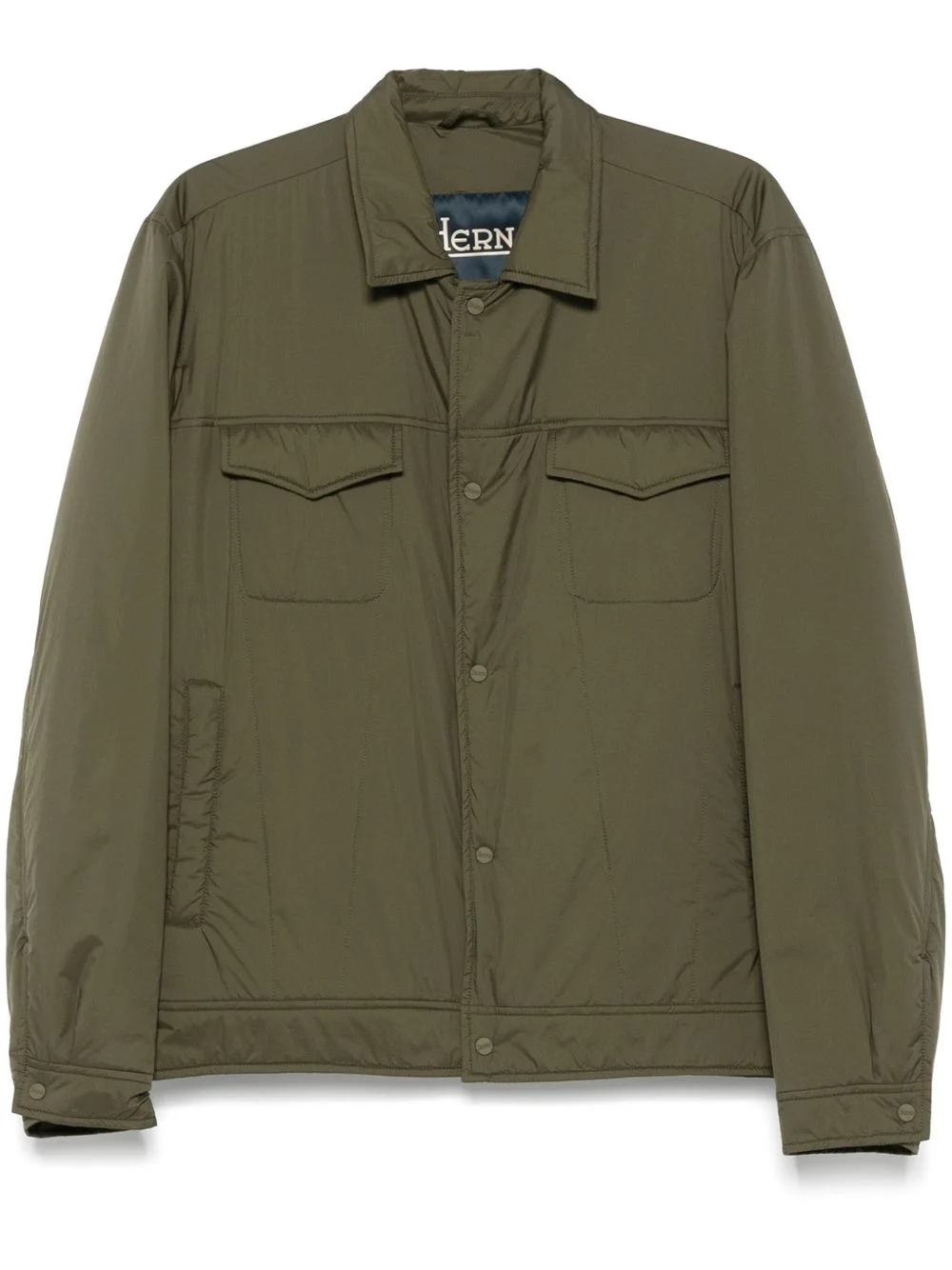 padded jacket Highlights - Olive green - Front press-stud fastening - Press-stud fastening cuffs - Two chest flap pockets - Two press-stud fastening side pockets Imported Composition Lining: Polyester 100%, Polyamide 100% Outer: Polyurethane 100%, Polyamide 100% SIZE & FIT Model measurements Height 6 ft 2 in(1.89 m) Bust/Chest 35.03 in(89 cm) Hips 38.18 in(97 cm) Waist 29.92 in(76 cm) FittingInformation Designed for a relaxed fit, this piece allows for comfort and movement when worn Made from a padded non-stretch fabric, giving it no natural elasticity